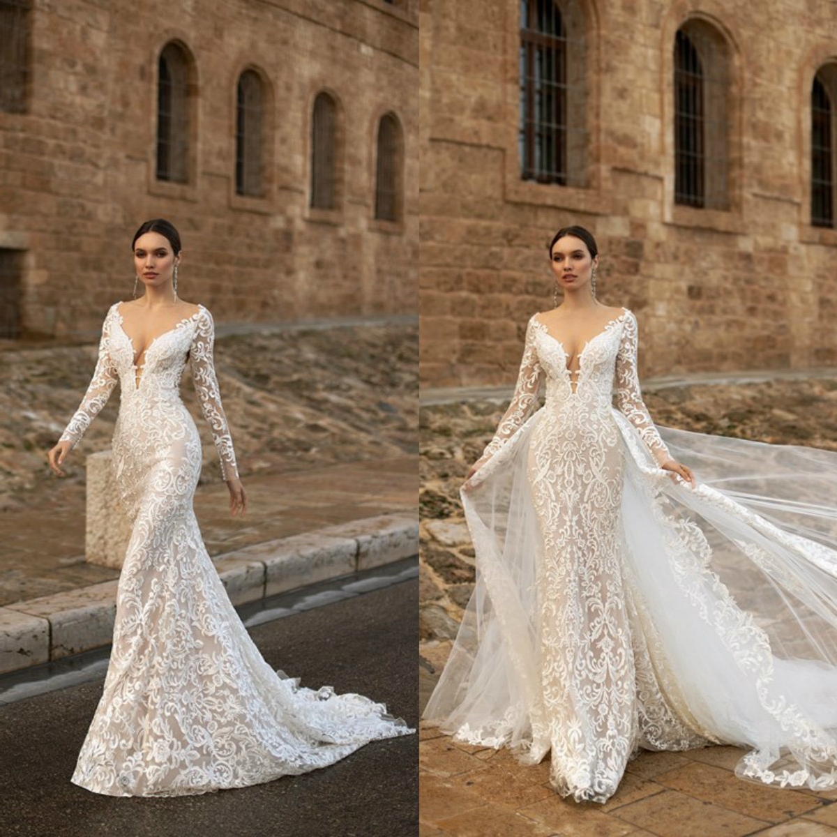 White Mermaid Evening Dresses Long Sleeve Appliqued Beads Prom Gowns Vintage High Neck Formal Pageant Dress
