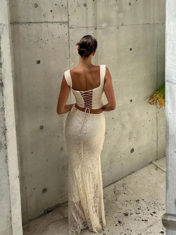 Nibber Elegant Stacked Folds Two Piece Set Women Solid Thin Strapless Chest TopsSlim Skirts Female Streetwear Matching Suit 240423