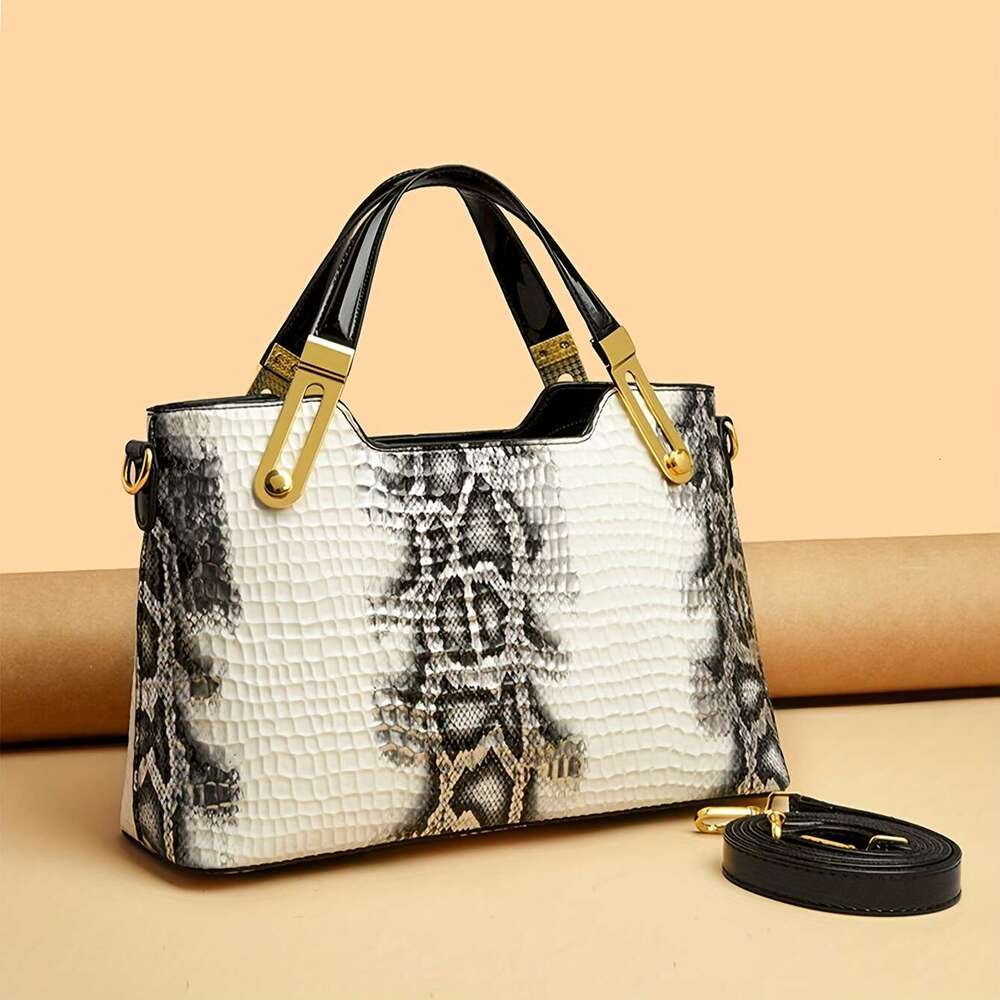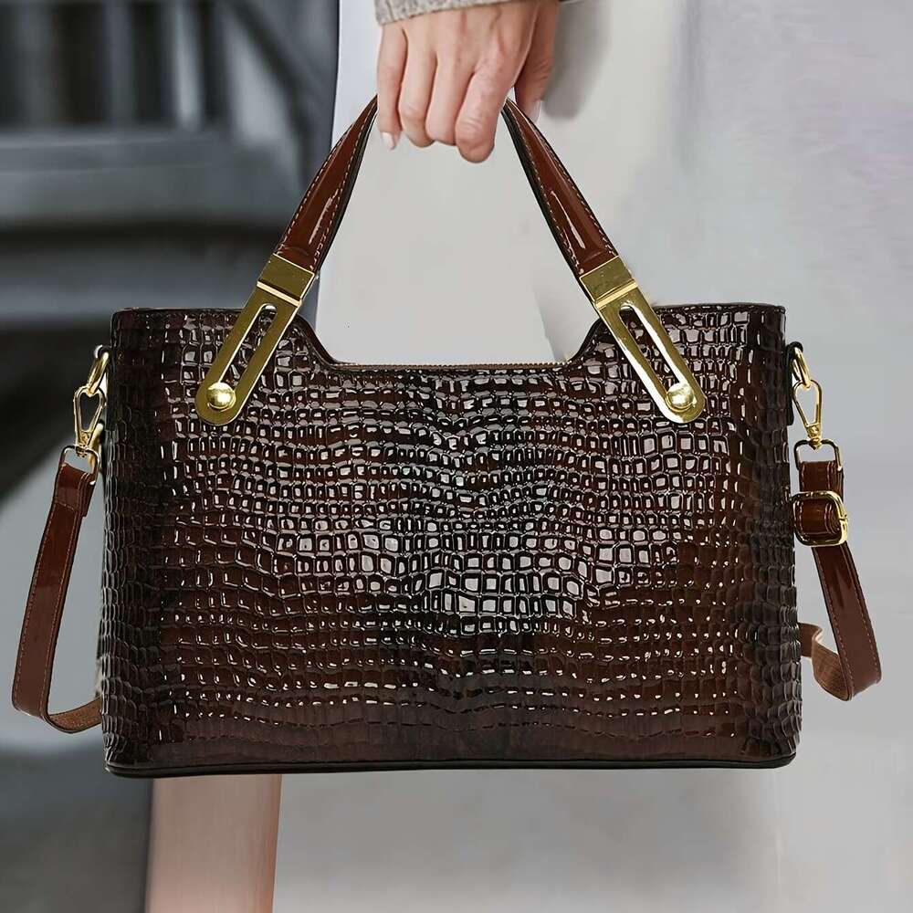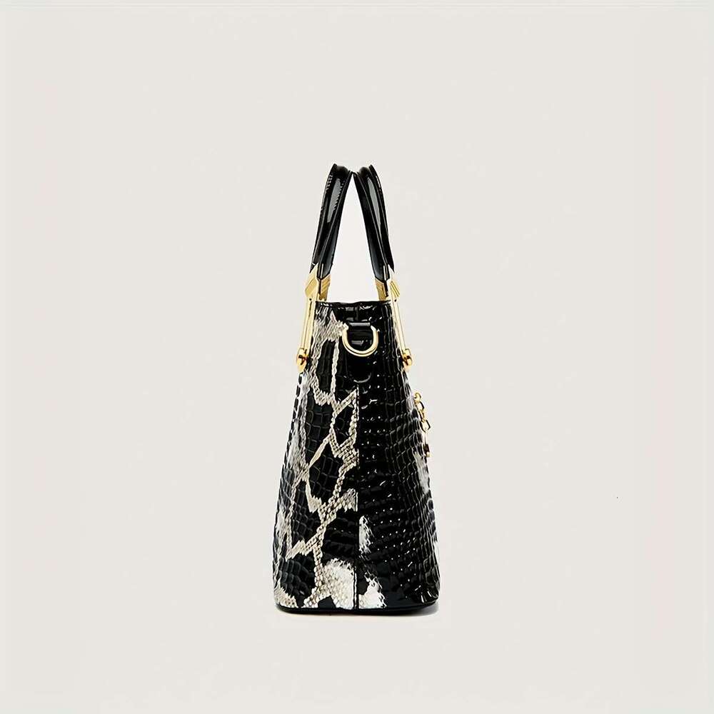 2025 New Genuine Leather Women's Tote Bag - Large Capacity Double-Layer Magnetic Closure, Woven Handle Smooth Texture Design, Versatile Commuting