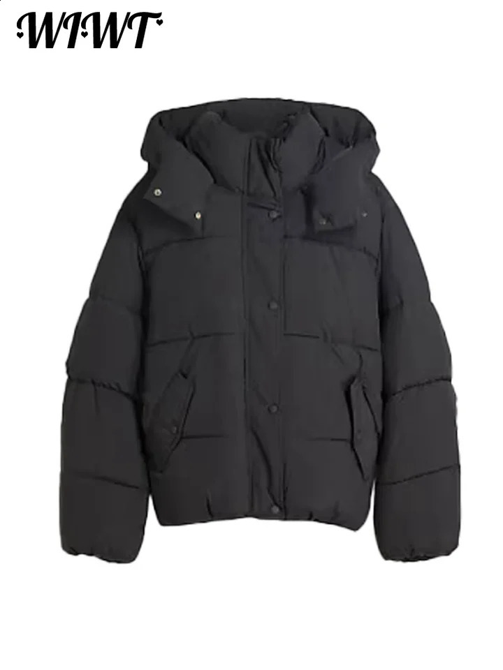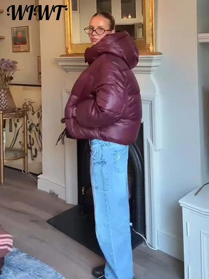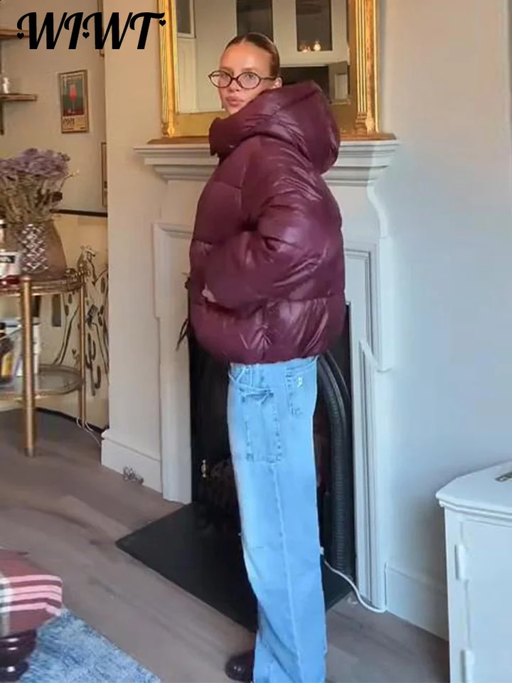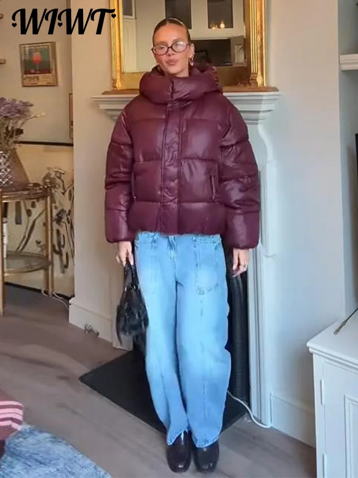 Fashion Printed Zipper Hooded Cotton Jacket Women Stand Collar Full Sleeve Loose Street Warm Coats Winter Lady Chic Outwear 251021