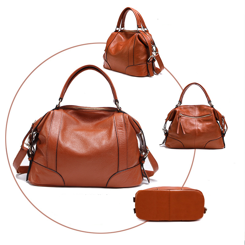 Vintage Genuine Leather Women's Handbags Shoulder Boston Large Capacity Pillow Bag Lady Cowhide Portable Messenger Bags